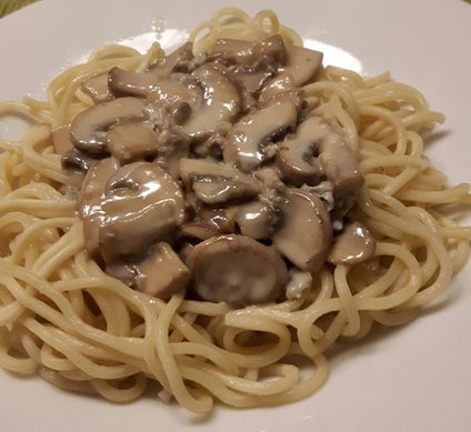 Snijd de champignons in plakjes en verkruimel de gorgonzola. Pel en snipper de knoflook fijn